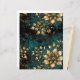 Bold teal and gold floral designs on a rich grunge background texture.