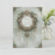 Capture the spirit of adventure and romance with this intricately designed artwork. The design centers on a stunning circular frame adorned with hanging feathers and turquoise beaded accents, reminiscent of a vintage dreamcatcher. The illustration features layers of antique gold latticework and soft teal foliage, set against a textured sage and grey watercolor background that mimics aged parchment or plaster. This blend of rustic texture and ornate golden details creates a sophisticated bohemian aesthetic that feels both free-spirited and luxurious. This unique design is an ideal choice for an outdoor woodland wedding or a rustic barn ceremony. It would also serve beautifully as an invitation for a boho-chic baby shower, a summer solstice celebration, or a milestone birthday party with a nature theme. It is also perfectly suitable for holistic wellness retreat flyers, yoga instructor business cards, or artisan craft fair booth signage.