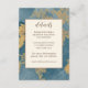 Wedding enclosure card depicts a modern beautifully designed teal and gold abstract watercolor background. It features reception and wedding website information and can be customised to the details of your choice.