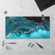 Teal & Gold Glitter Agate With Monogram Desk Mat