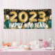 New Year's Eve 2023 decor, signs and banners. Elegant Teal Gold Glitter Balloons 2023 banner reads, Happy New Year 2023 with gold foil balloon design, chic gold string lights and accents.