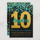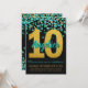 Teal Gold Glitter Confetti Black 10th Birthday Invitation