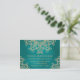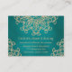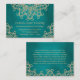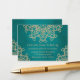 A beautiful jewel toned teal peacock green turquoise and gold wedding or any special occasion reception enclosure card with an exotic Indian inspired ornamental sari like pattern with a lotus and floral sunburst design. This elegant and beautiful modern upscale and luxe Indian style enclosure card is perfect for any formal occasion with an east asian indonesian moroccan arabian nights or aladdin theme. Design © Chrissy H. Studios, LLC. All Rights Reserved.