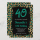 Teal Gold Leopard Painted Black 40th Birthday Invitation