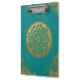 Rich teal leaves create a beautiful pattern inside a gold mandala circle on a teal and gold grunge background on this elegant clipboard.