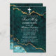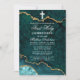 Teal Gold Marble Agate Geode First Holy Communion Invitation