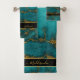 Teal Gold Marble Agate Monogram Name Custom Bath Towel Set