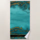 Teal Gold Marble Agate Monogram Name Custom Beach Towel