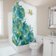 Teal Gold Monogram Name Watercolor Floral Shower Curtain