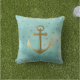 Teal Gold Nautical Anchor Mermaid Scales Outdoor Cushion