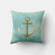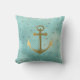 Trendy, nautical theme teal and gold outdoor pillow- Faux metallic gold anchor displayed against teal and gold foil look mermaid scales pattern. Same on back. Mermaid pattern pillow suitable for both stylish teal decor and outdoor beach styles, as well as teal aqua and gold colour schemes. Would look pretty in a beach house, girls room, lake house, summer vacation home, or on your boat.