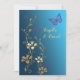 This teal blue and gold floral wedding invitation has purple butterflies and customisable text boxes. The text and paper choice is customisable. If you require any matching items in this design, please email your request to niteowlstudio@gmail.com. A design fee may apply.