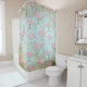 This turquoise and pink Teal Gold Shiny Cherry Blossom Spring Pattern Illustration shower curtain is created with vintage elements such as trees and branches of cherry blossoms on beautiful teal and gold watercolor background elements.