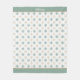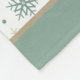 This winter theme fleece blanket features a pretty pattern of teal and gold snowflakes which are placed on a white background.There is a matching solid teal border at top and bottom. The top border holds your name or other text in white script. Festive, and versatile enough to be used beyond the Christmas season. Pattern design credit to https://www.etsy.com/shop/ephrazydesign.