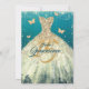 Teal Gold Sparkle Butterfly Dress Quinceanera Invitation