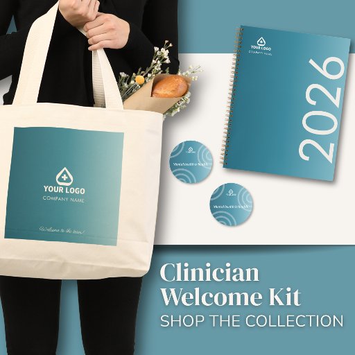 New clinician welcome kits · Therapist appreciation gifts · Behavioural health onboarding · Mental health practice branding · Social worker gifts · Counsellor planner