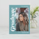 Modern and simple teal and white graduate script open house photo graduation. Add 3 of your favourite photos with an elegant retro style font and photo grid collage.
