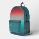 TEAL GRAY BLACK RED OMBRE & GEOMETRIC PATTERNS PRINTED BACKPACK