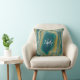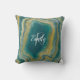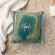 Teal Green Agate Marble Abstract Name Monogram Cushion