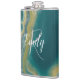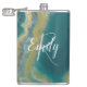 Teal Green Agate Marble Abstract Name Monogram Hip Flask