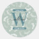 Teal Green Botanical Leaves Monogram Classic Round Sticker