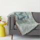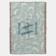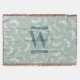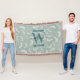 Teal Green Botanical Leaves Monogram Throw Blanket