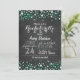 Teal Green Confetti Chalkboard Bachelorette Party Invitation