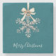 Teal Green Cream Bow Silver Snowflake Stone Coaster