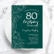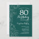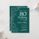 Green Floral 80th Birthday Party Invitation. Minimalist modern design featuring botanical outline drawings accents and typography script font. Simple trendy invite card perfect for a stylish female bday celebration. Can be customised to any age. Printed Zazzle invitations or instant download digital printable template.