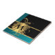 Teal green gold and black monogram ceramic tile