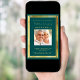 An elegant, modern, simple birthday invitation. A deep teal, green background decorated with faux gold frames. Personalise and add a photo name and details. Golden text.