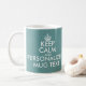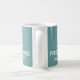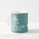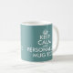Teal green KeepCalm Mugs | Personalizable template. Cute gift idea for men and women. Customise background colours ie teal. Create your own funny KeepCalmandCarryOn parody. Simply edit the text of this template to make a unique design. Popular quotes: Keep calm and party on. Keep calm and love me. Keep calm and drink coffee. Personalised mugs are a great gift idea for friends and family at home or in the office.