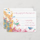 Teal Green Raspberry Gold Wild Flower Bird Wedding RSVP Card