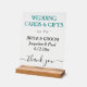 Wedding cards and gifts is written in teal green typography. For the bride and groom is written in black typography against a clear background signage. Insert Couple's Names and Date of Wedding. Elegant wedding reception table display signage. Thank you is written in black script. Designs by TamiraZDesigns.