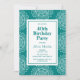 Teal green and white mandala flower pattern birthday invitations.