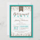 Personalise this elegant, professional, turquoise, teal Green, white, taupe brown, tan confetti retirement party invitation. Great for man or woman coworker formal corporate business office retirement celebration. Perfect year round for spring, summer, fall, or winter male / female company Modern retirement parties.
