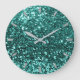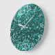 Teal Greenery Aqua Sparkly Faux Glitter Gray Glam Large Clock