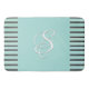 Teal, Grey, and White Stripes Bath Mat. A blue green, monogrammed modern, chic, and contemporary seamless design for home bathroom décor. Mats are a simple and stylish accent accessory to help compliment your colour scheme and style of the main, guest, or master bathroom. I would be happy to rescale, tint, or design with you in mind, just message me to get started.