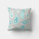 Teal Grey Paisley Pattern Decorative Pillow