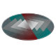 Teal grey triangles on burgundy cutting board