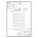 Make your wedding reception beautiful with these table number cards. Designed as a part of our Teal & Grey Elegant Wedding Suite, they feature a simple yet elegant design with teal or turquoise & Grey text on a white background with a silver faux foil floral border. These cards include seating assignments so your guests will have an easy time finding the right table.