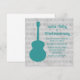 Funky and cool Guitar Grunge Wedding Invitation in teal featuring an acoustic guitar silhouette and grungy star background. This unique wedding invite is perfect for your rock and roll or music themed wedding! Easy to customise, simply add the details of your wedding in the fields provided. Click on the "Customise It" button to find additional personalisation options.