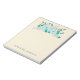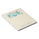 This colourful floral notepad features a hand drawn floral graphic on the top. The design offers the colours: teal, dark blue, grey and green. The background colour is cream, although it can be changed to any colour available by choosing customise it. Customisable text, near the bottom, allows you to add a personal name.