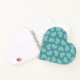 Heart shaped spiral notebook covered in a playful heart pattern designed by Monkey Business Graphic Design. © 2019