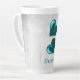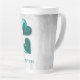 Enjoy your latte or morning coffee with a Teal Hearts Personalised Latte Mug. Mug design features a a pair of hearts, a soft white leafy vine against a light grey grunge background with an area to personalise with your name. Additional gift items available with this design as well as a variety of colours.