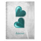 Create a unique and one of a kind journal with a Teal Hearts Personalised Spiral Photo Notebook. Notebook design features a a pair of hearts, a soft white leafy vine against a light grey grunge background with an area to personalise with your name. Additional gift items available with this design as well as a variety of colours.