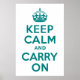 Teal and white "Keep Calm and Carry On" modern version of classic poster.