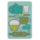 This handy refrigerator magnet features useful recipe measurement conversions and illustrations of kitchen tools in shades of teal, avocado green, lime and white. It's ready to be personalised with a name along the rolling pin graphic at the bottom.