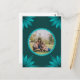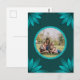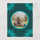 Teal Leaf Mandala Design on Dark Cyan Postcard