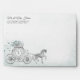 Searching for enchanting stationery ideas to complete your princess themed celebration? Turn ordinary envelopes into fairy tale keepsakes with this easy-to-edit DIY template. Personalize the 5x7 envelope design with your own return address in minutes. This beautiful design showcases original fairytale art by Raphaela Wilson, featuring a vintage crown horse drawn carriage, a nearly midnight clock, and soft watercolor textures in shades of teal, light sage, and seafoam green. The floral envelope liner is decorated with a lush pattern of roses creating a dreamy royal garden feel. Accents of faux silver confetti and whimsical butterflies add a hint of sparkle, perfect for a teal and sage quinceanera, storybook wedding, Cinderella sweet 16, or elegant bridal or baby shower. The back flap continues the theme with matching florals, graceful greenery, and shimmering confetti touches. Choose from elegant calligraphy script or modern fonts to complete your look — and even include decorative wax seals or stickers for a charming finishing touch. Category: cute butterfly princess wedding envelopes; horse drawn carriage pre addressed wedding return address envelopes; and light teal floral 5x7 envelopes (rsvp card size available). Silver and seafoam green quinceañera theme colors: blue evergreen teal, light teal, pale sage, dark ocean green, light sage green, light seafoam, dusty aqua, mint, light grey, dark gray, faux metallic silver, black and white.